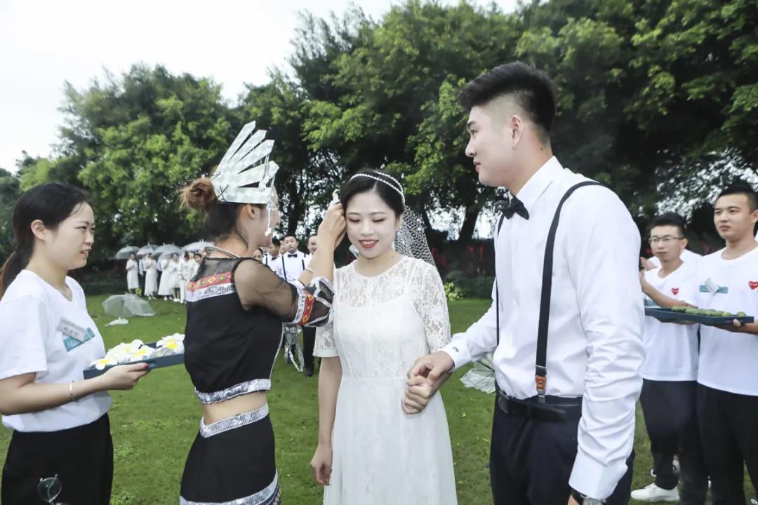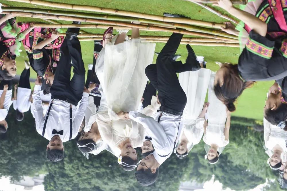 上午9點08分,30對新人在別具風情的黎族歡迎儀式中開啟了浪漫的求婚之旅,熱情歡快的竹竿舞、青春洋溢的快閃舞蹈,將現場歡樂氣氛推向高潮。