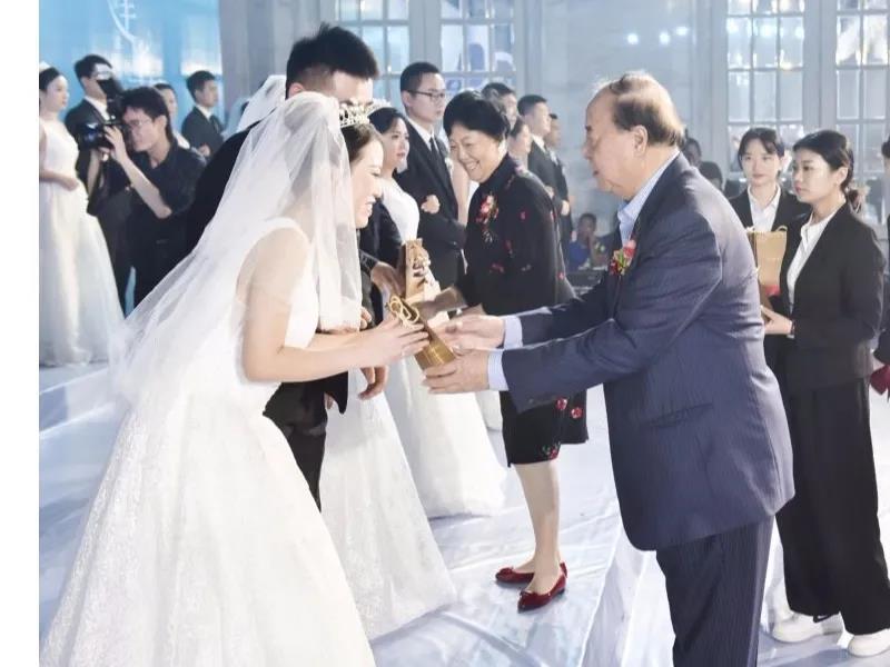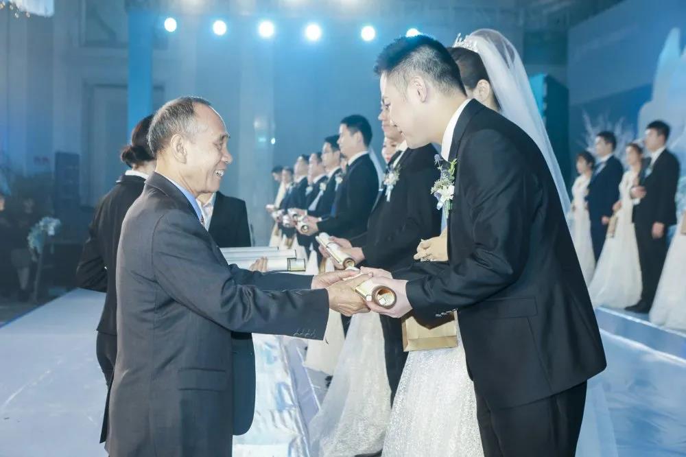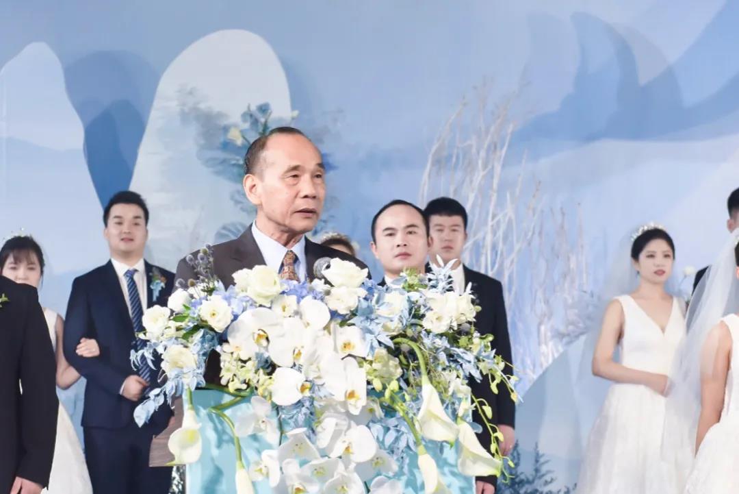 許景新先生親自為新人們證婚,對全體新人喜結良緣表示祝賀,希望全體新人在人生旅程中互敬互愛、和睦相處,用心經營幸福家庭,用愛締造美好未來!