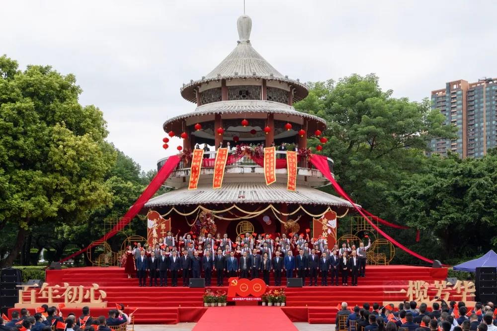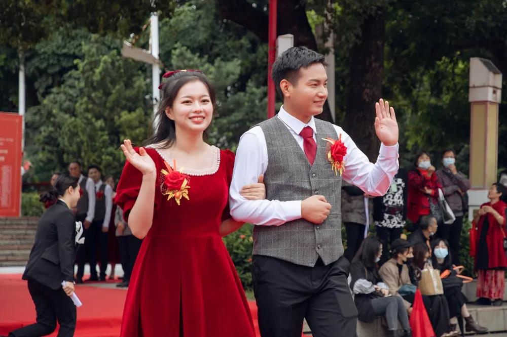 所有來(lái)賓揮舞國(guó)旗,齊聲歌唱《沒(méi)有共產(chǎn)黨就沒(méi)有新中國(guó)》,把現(xiàn)場(chǎng)的氣氛推向高潮。伴著紅心向黨的告白,“百年初心,一‘欖’芳華”第十六屆青年集體婚禮外場(chǎng)圓滿禮成!