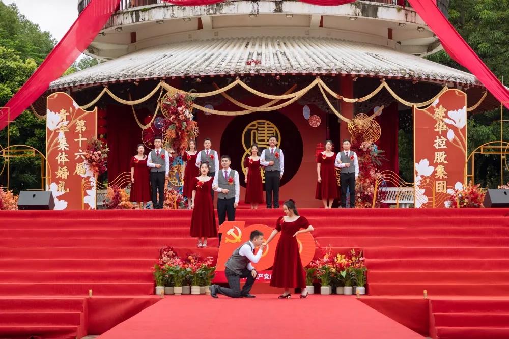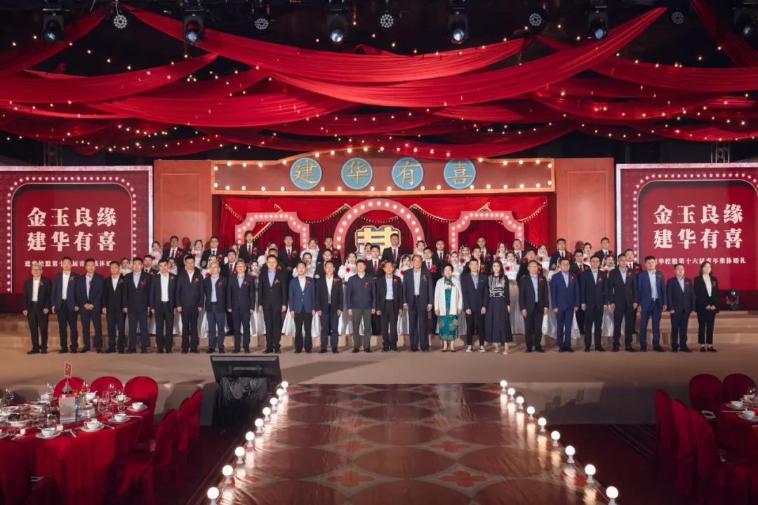 最后,全體新人和現(xiàn)場(chǎng)嘉賓共同合影,留住這溫馨美好的時(shí)刻。至此,建華控股第十六屆青年集體婚禮圓滿禮成!
