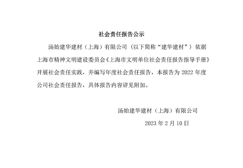 湯始建華建材(上海)有限公司社會(huì)責(zé)任報(bào)告(2023年度)見附件